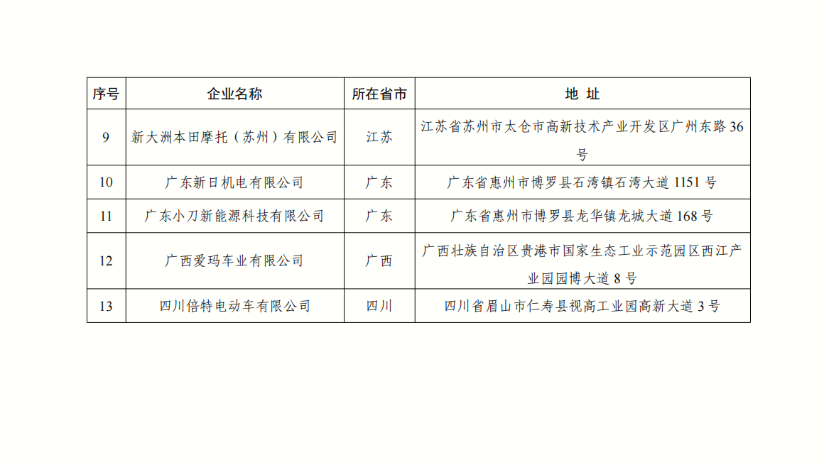 符合《電動(dòng)自行車行業(yè)規(guī)范條件》企業(yè)名單(第三批)